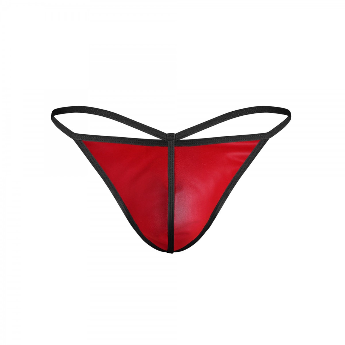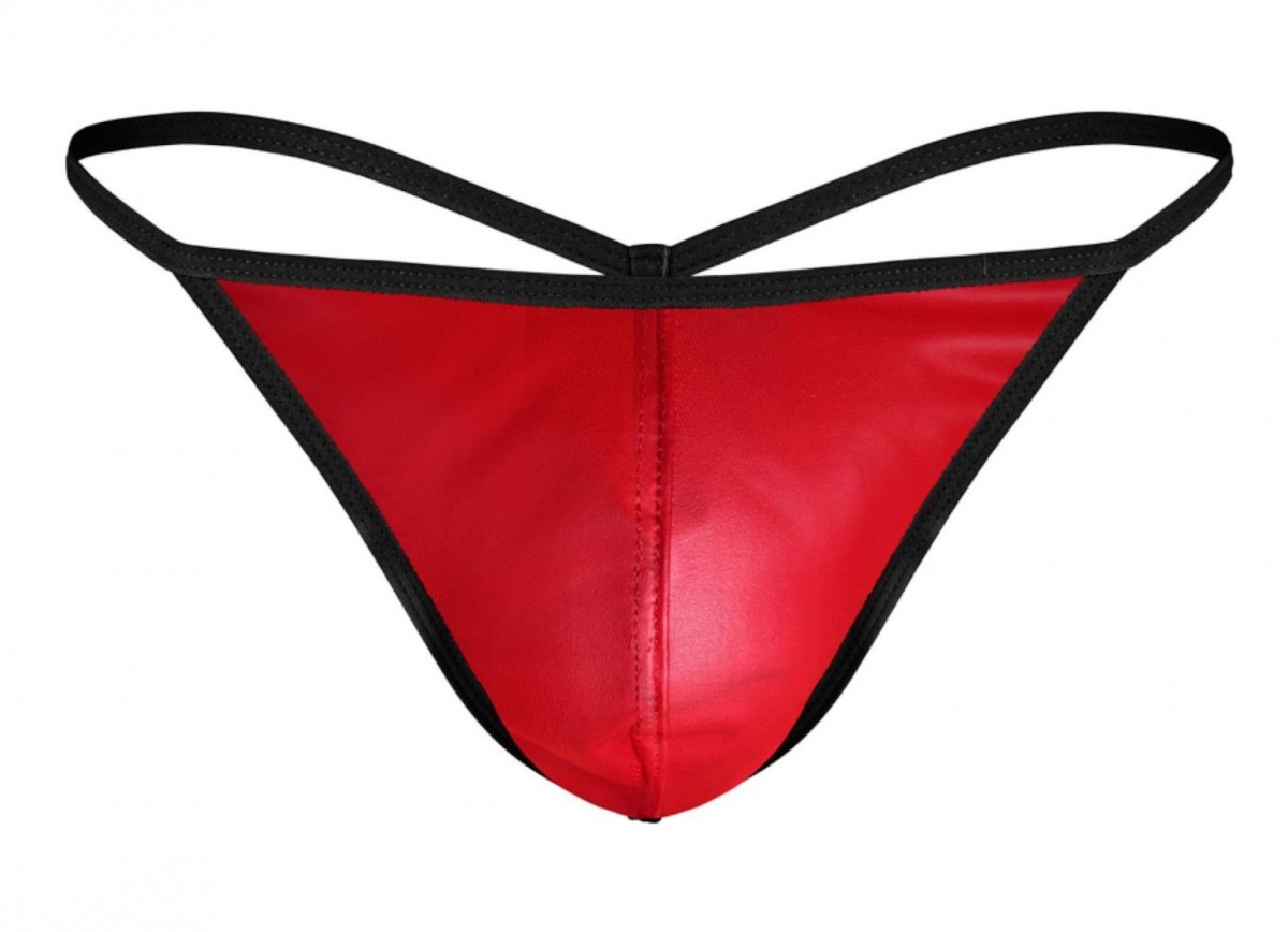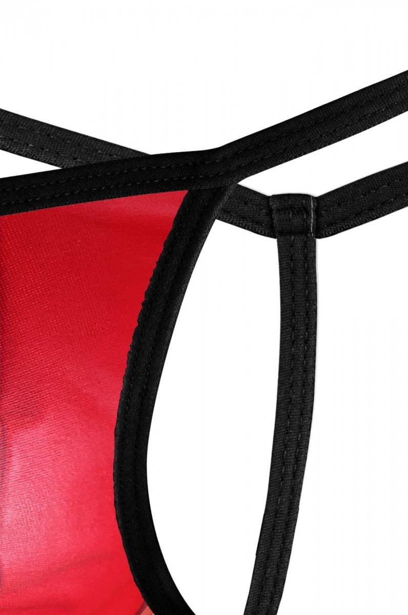 Красные трусы-стринги с черной окантовкой.