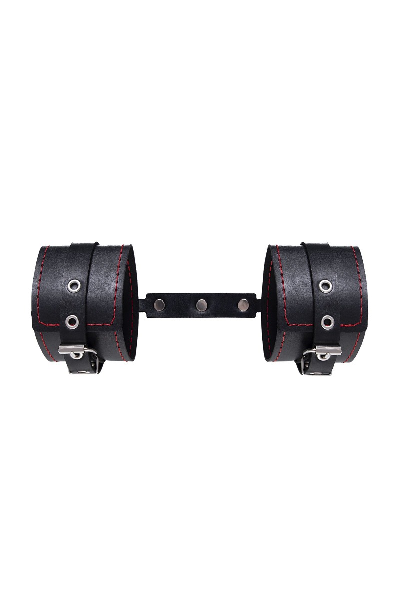 Эти однослойные кожаные оковы с контрастной строчкой красного цвета могут стать стильным аксессуаром, а могут послужить вашим целям по своему прямому назначению. Частичное обездвиживание и невозможность двигать руками или ногами дают вам полную власть над партнером – взрослые игры для взрослых. Наличие двух колец и карабинов, соединенных между собой кожаным ремешком, позволяет использовать изделие как раздельно – аксессуар-манжеты, так и как оковы для фиксации. К широким металлическим кольцам также можно присоединить и другие аксессуары при помощи карабинов. Благодаря универсальному размеру оковы могут использоваться и мужчинами, и женщинами. Размер легко регулируется с помощью металлических пряжек, органично вписывающихся в общий стиль. Длина манжет - 25 см, ширина - 6,5 см. Длина сцепки - 17 см.