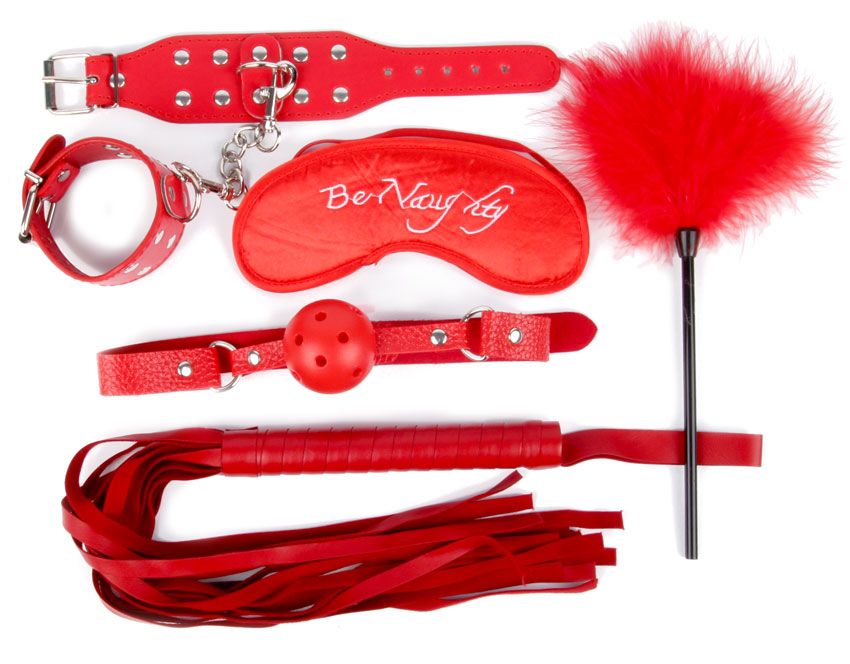 Великолепный набор аксессуаров для любителей БДСМ. Наручники, оковы, крестовина, ошейник, пуховка, поводок, зажимы на соски, плеть, кляп-шарик и веревка. Плеть-флоггер состоит из хвостов и удобной рукоятки с петлёй для подвешивания на крючок. Кляп оснащён шариком с отверстиями для дыхания. В комплекте: наручники, маска, кляп, плеть, щекоталка.