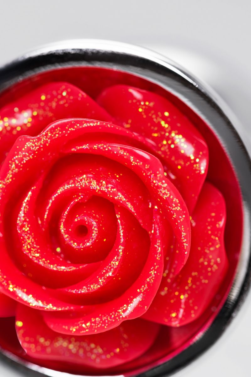 Небольшая металлическая анальная втулка с украшением призвана внести разнообразие в сексуальные развлечения. Размер втулки подходит для начинающих. Ограничитель втулки украшен изящной розочкой. Глянцевые лепестки, выполненные из эпоксидной смолы, выглядят как настоящие, это украшение непременно добавит красоты и нежности в ваши отношения. Такая втулка может стать отличным подарком с намеком, тем более такой цветок никогда не завянет. Игрушка подходит для длительного ношения вне стен спальни. Такая игра добавит пикантности в вашу жизнь, ведь знать об этом украшении будете только вы и ваш партнер. Металл – один из самых безопасных и гигиеничных материалов, он прост в уходе, дружит со всеми видами смазок, подходит для длительного ношения, а кроме того отлично поддается играм с температурами: для получения новых ощущений нагревайте или охлаждайте втулку. Рабочая длина - 3,5 см.